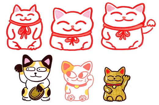 Hi y’all! I’m so excited Substack just added this Chat feature and would love to experiment with sharing our MightCouldDrawToday drawings here! ⭐️ I’ll start a new thread each week for that week’s art prompt and you can comment below to upload your art any time during the week and take a look at what everyone else has made too! Woohoo for sharing art and cheering each other on! 🙌 Up first is Week #197: Maneki-Neko! 🐱And, since this is our first thread, tell us your name and where you’re from! You can still say hello even if you haven’t drawn anything (yet!) Can’t wait to chat and see your